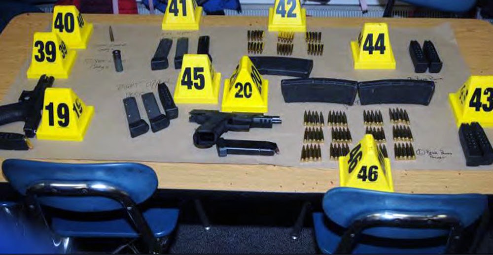 La policía recuperó tres armas de la escena: una .223 Bushmaster semiautomática, una pistola Glock y una Sig Sauer. Tras revisar su casa, los agentes no encontraron cartas o diarios que pudieran darles alguna pista sobre las causas de la masacre.