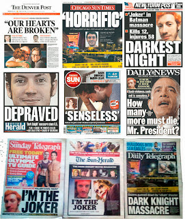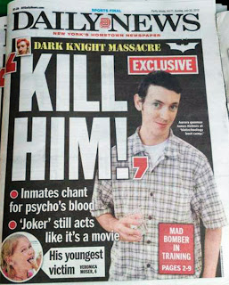 En una serie de declaraciones tendenciosas, el comisionado del Departamento de Policía de Nueva York, Ray Kelly, afirmó en una rueda de prensa que Holmes había dicho que era El Joker: “Sí, efectivamente, se identificó como El Joker. Tenía el pelo teñido de anaranjado, me dijo que era El Joker, el enemigo de Batman. Así como la gente imagina cosas sexuales luego de ver una película sexual, otras personas pueden tener ideas agresivas luego de ver una película violenta”. Sin embargo, como consta en las miles de páginas de documentación sobre el caso, Holmes jamás dijo eso, pero fue citado como cierto por noticiarios y periódicos en todo el mundo, que bautizaron al asesino con el sobrenombre que lo haría famoso: "El Joker de Aurora".
