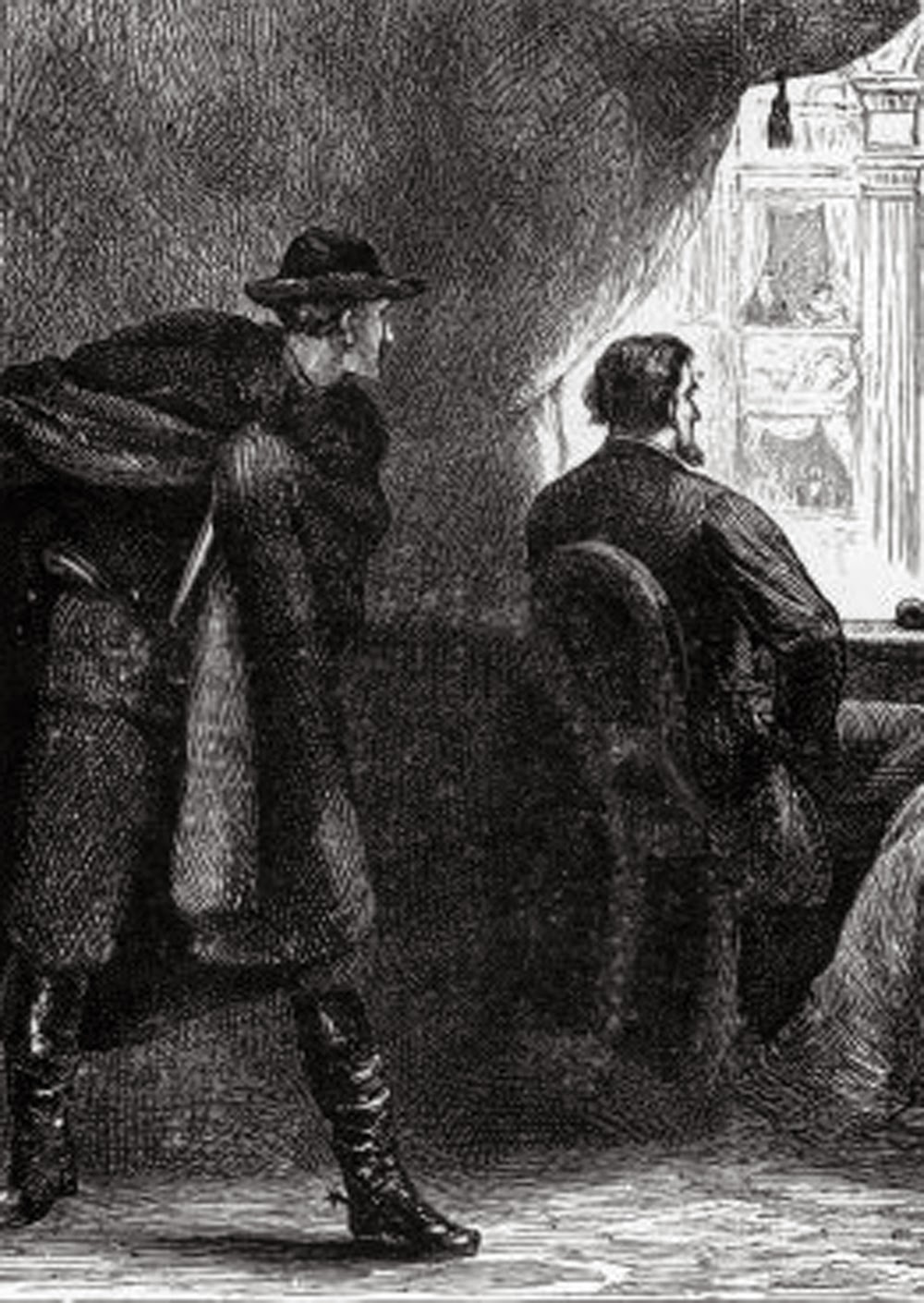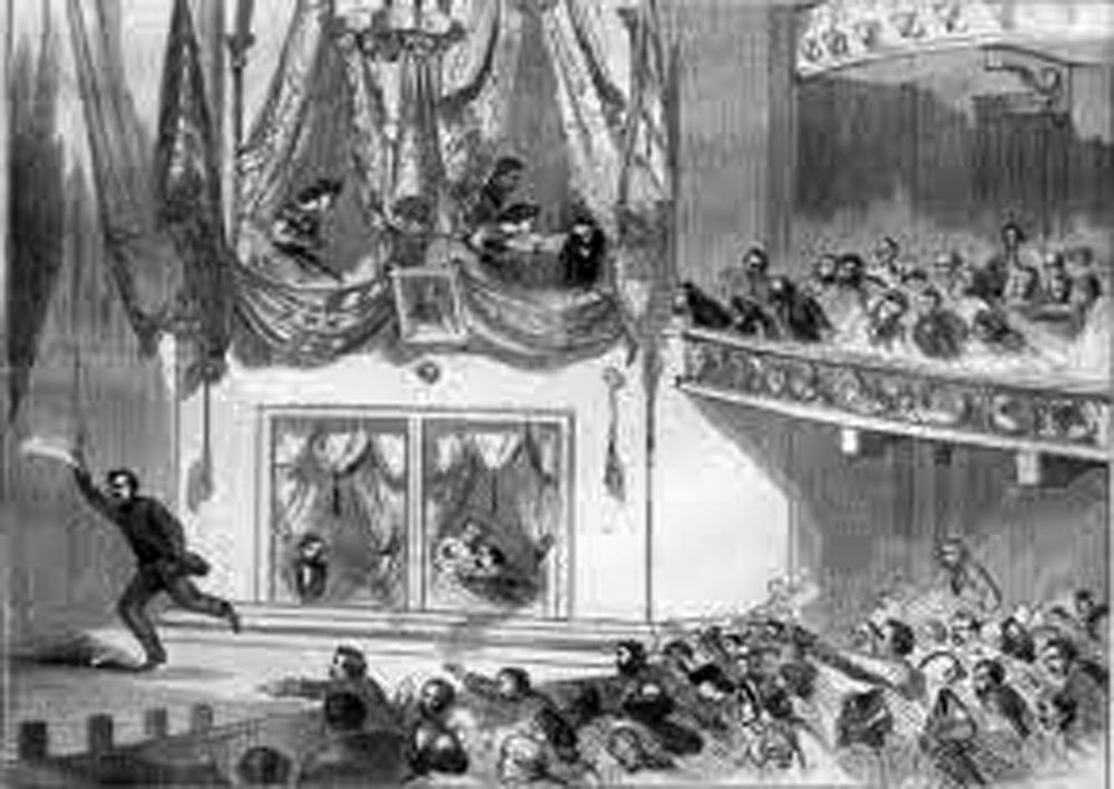 Booth sacó la pistola y aguardó el momento propicio. Oía distantes, pero con claridad, las palabras de los actores, hasta que llegó por fin la frase esperada; el actor Harry Hawk espetó: “¡presuntuosa cazadora de viejos ricos!”