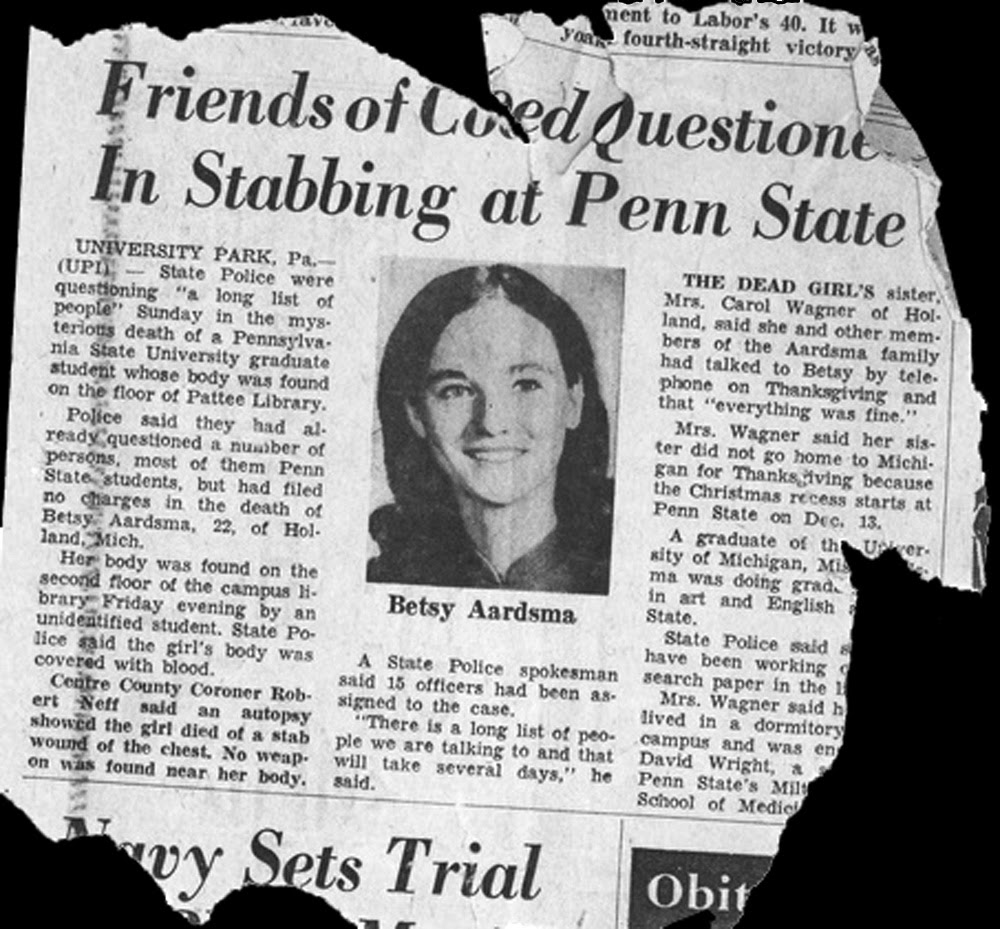 El expediente del caso llegó a tener 1,500 páginas. Nadie lo sabía, pero la investigación duraría más de cuarenta años, con pocos sospechosos, escasos testigos y ninguna solución. Hasta le fecha, el sitio donde fue asesinada Betsy Aardsma es frecuentado por alumnos de la institución, que inclusive cuentan la historia de que el fantasma de la desafortunada chica se aparece en el pasillo, reclamando justicia.
