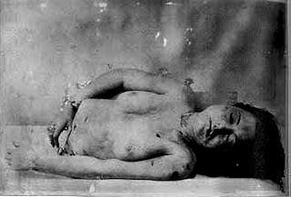 El abdomen fue hallado en la maleta. El cadáver de Anne seguía entero, pero metido a presión en el baúl grande; parecía una muñeca mal hecha. La identificación no ofreció ninguna dificultad. Un gran número de objetos habían sido empaquetados junto con los cuerpos, incluyendo fotografías de las víctimas.