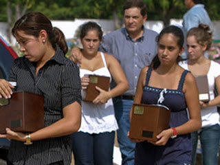 El 6 de septiembre a las 06:00 horas llegaron los cuerpos a la funeraria. Cremaron primero a los niños y después a sus padres. El Gobernador de Tabasco, Andrés Granier Melo, estuvo presente para participar en los servicios funerarios.