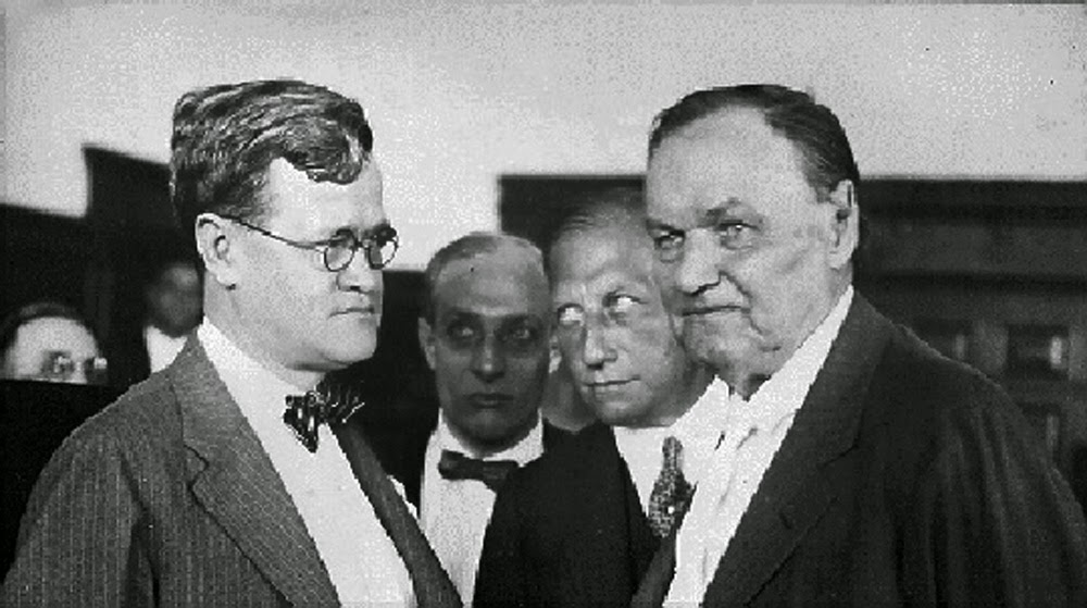 Al año siguiente, en 1925, llevó otro caso famoso, defendiendo a John Scopes, un profesor de segunda enseñanza que había violado una ley de Tennesse que prohibía la enseñanza en las escuelas estatales de la Teoría de la Evolución, porque contradecía a La Biblia. En este caso, conocido como “El Juicio del Mono” debido al examen de la teoría según la cual los seres humanos descienden del mono, hubo un célebre enfrentamiento entre el fiscal William Jennings Bryan y Darrow, que inspiró la película de Stanley Kramer Inherit the wind. En uno de sus últimos casos, los clientes estaban acusados de homicidio, no de asesinato, y se vieron libres de sus sentencias de prisión en una hora. Esto era el resultado de lo que fue conocido como el “Efecto Compasión” de Darrow. Los acusados eran una familia negra que se había resistido el desahucio de su casa en un vecindario blanco por un grupo de vecinos blancos. El letrado era conocido por sus opiniones liberales, por apoyar a los marginados y por su adhesión a ideas científicas más que religiosas.