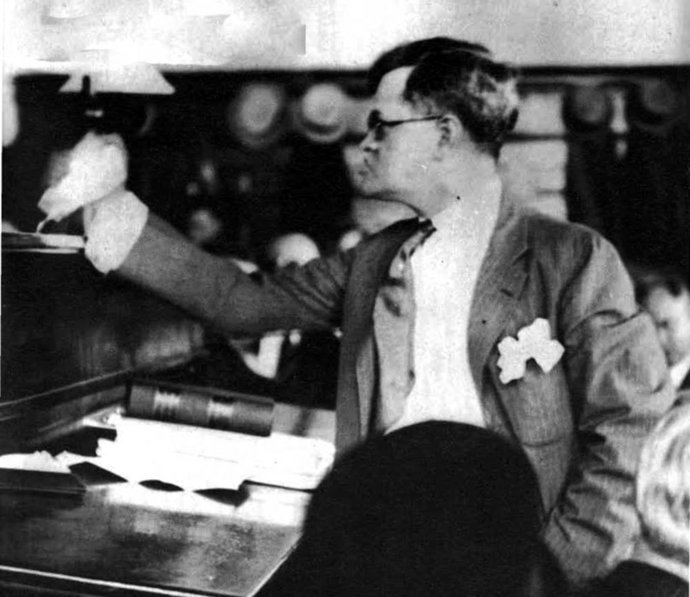 El fiscal del Estado, Crowe, preguntó quién esgrimía el escoplo. “Él”, dijo Richard Loeb señalando a Nathan Leopold y añadió que su amigo estaba sentado en el asiento delantero; entonces se corrigió a sí mismo diciendo: “Estoy nervioso”.
