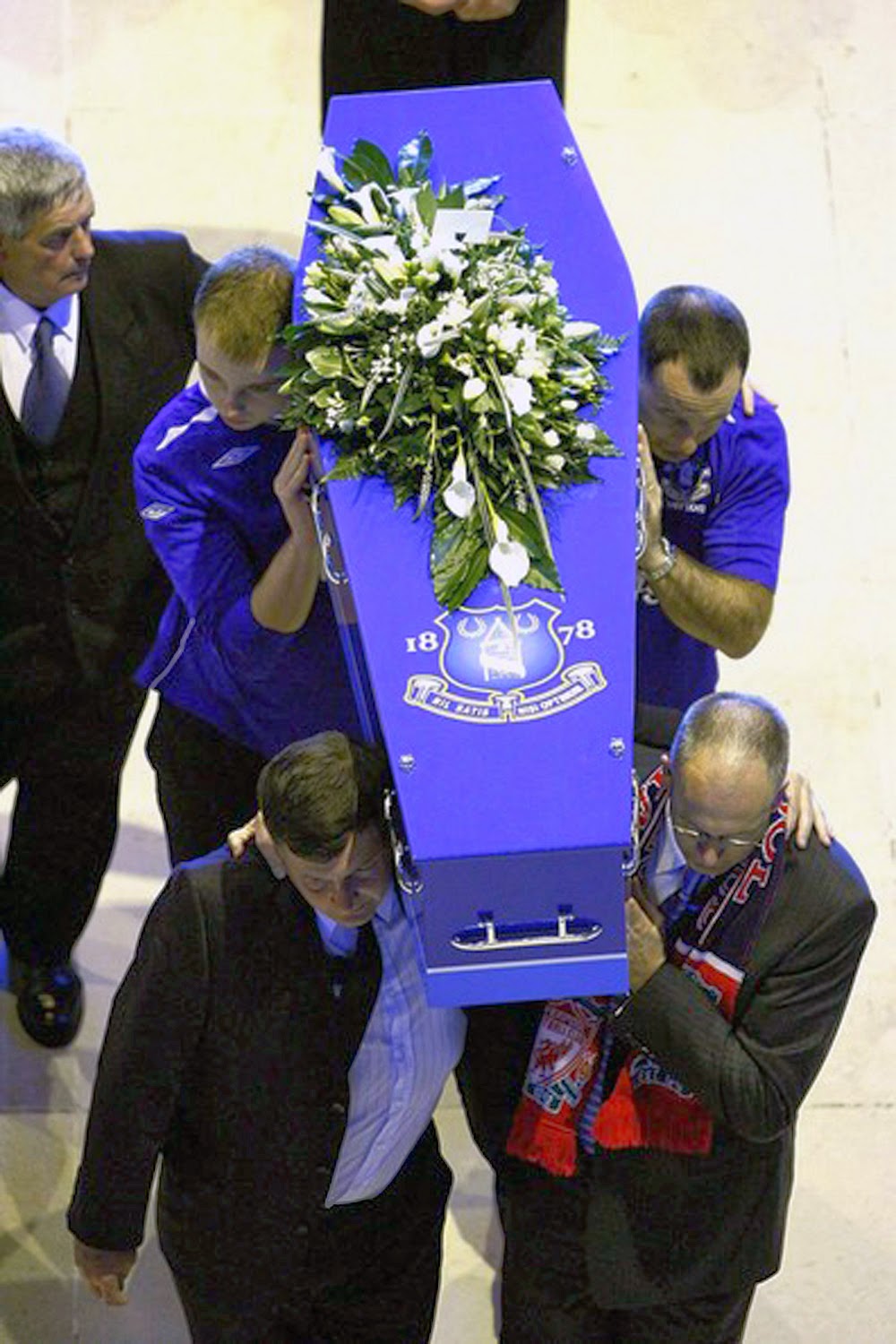 Los padres de Rhys vistieron el cadáver de su hijo con el uniforme del Club de Football Everton y mandaron a fabricar un ataúd de color azul, con el logotipo del equipo. En una acción sin precedentes, los jugadores del Everton decidieron acudir al sepelio. Como un gesto simbólico, fueron vestidos con sus uniformes.