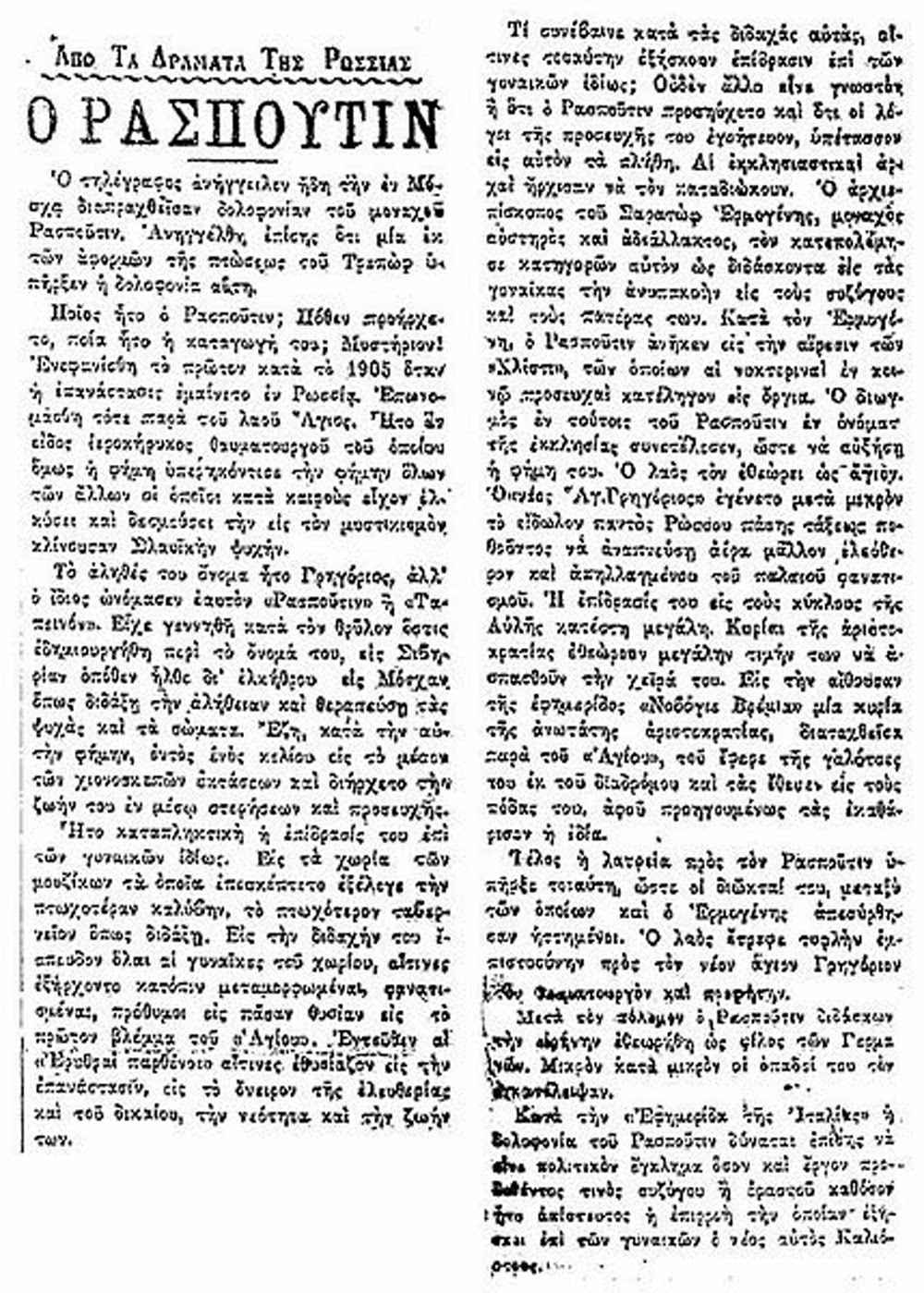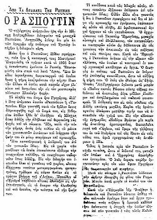 Titular sobre el asesinato de Rasputín