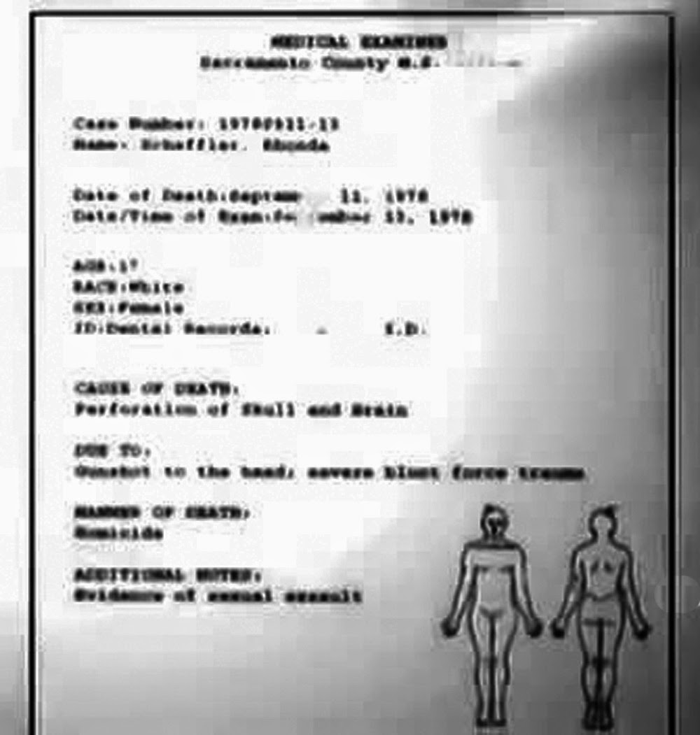 Al día siguiente, la pareja llevó a las chicas de vuelta al condado de Sacramento, donde Gerald hizo que Rhonda y Kippi salieran de la camioneta y caminaran a través del campo hasta donde se encontraba una zanja. Se aproximó a ellas con una barra de hierro y les dio una golpiza, para luego dispararles en la cabeza con una pistola calibre .25.